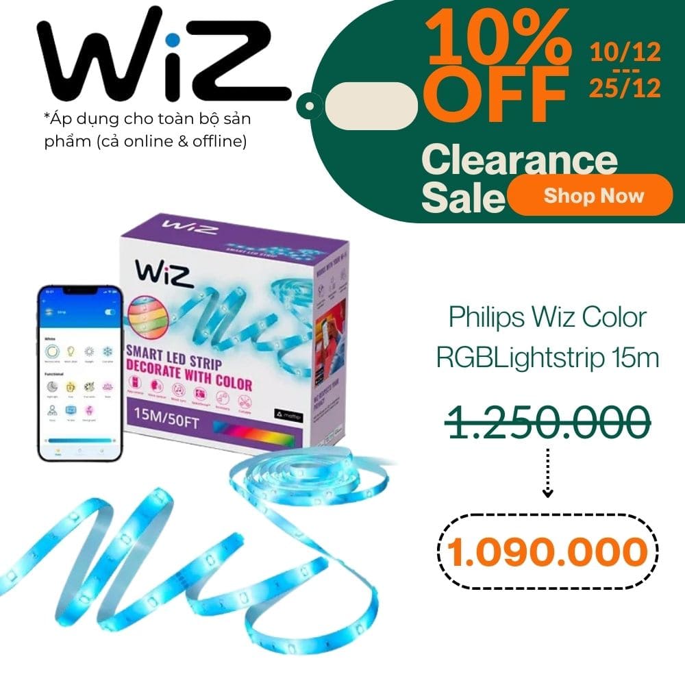 wiz clearance sale (1) Published 08/12/2024 at 1000 × 1000 in Đèn LED dây Philips WiZ Lightstrip RGB Matter 15 mét ← Previous