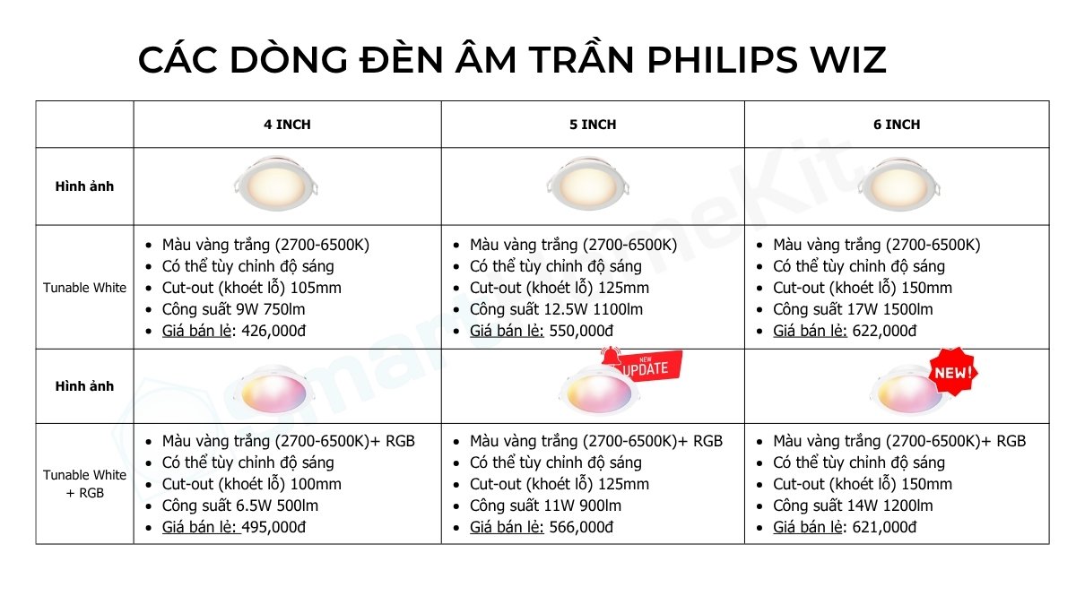 Combo 4 đèn Philips Wiz Downlight Full Color 16 triệu màu Wifi & Matter