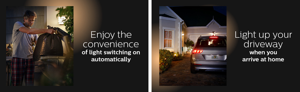 Tự động sáng đèn ngay khi bạn vừa về tới nhà, Philips Hue Outdoor Sensor là một người bạn thông minh giúp bạn thực hiện điều này. Không còn phải chờ đợi mọi thứ trong bóng tối. Giờ đây những bóng đèn thông minh trước nhà sẽ tự động bật khi bạn tới gần. Cảm biến thông minh ngoài trời là một thiết bị hữu ích với những ngôi nhà hiện đại. Nó sẽ giúp tự động bật đèn Philips Hue của bạn khi có người đi ngang qua, cho dù ngoài trời hay trong trong nhà. Bằng cách kết nối cảm biến với Hue Bridge của bạn thông qua ứng dụng Philips Hue. Bạn có thể chọn đèn nào sáng, ngay cả đèn trong nhà bạn. Cũng có thể chọn cài đặt ánh sáng theo màu sắc bạn muốn.