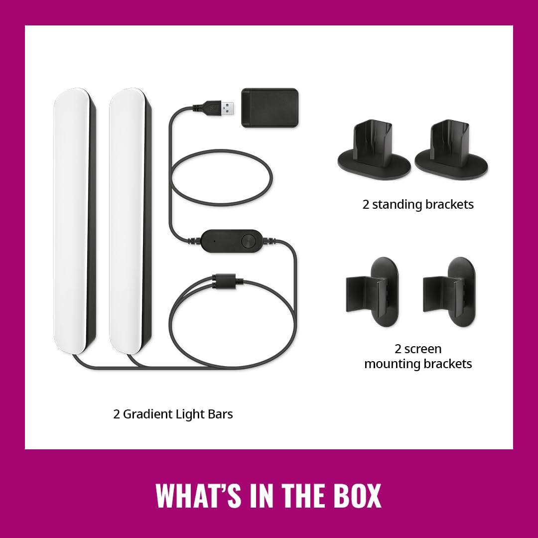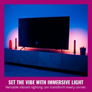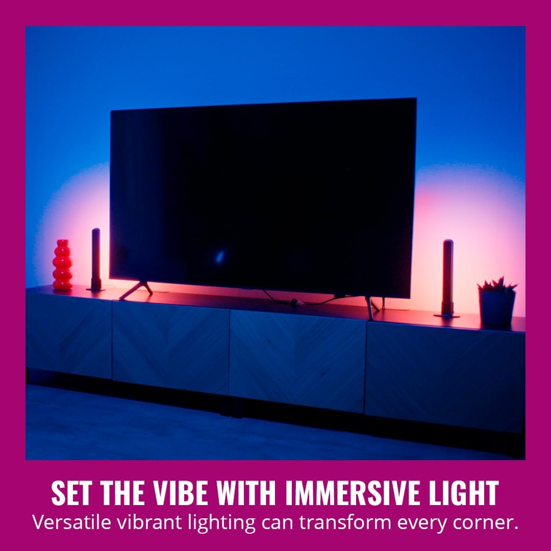 Mang ánh sáng động đến ngôi nhà của bạn với WiZ Gradient Light Bars (2 cái đi kèm). Tận hưởng công nghệ RGBIC cho màn hình nhiều màu. Đặt chúng theo chiều ngang, chiều dọc hoặc phía sau TV của bạn để tạo ra bầu không khí hoàn hảo. Các chế độ cài đặt trước cho phép bạn chuyển đổi giữa các chế độ ánh sáng động, tĩnh hoặc tùy chỉnh. Bạn thậm chí có thể để đèn nhấp nháy theo nhạc hoặc đồng bộ với màn hình TV của bạn (cần có Wiz HDMI Sync Box).