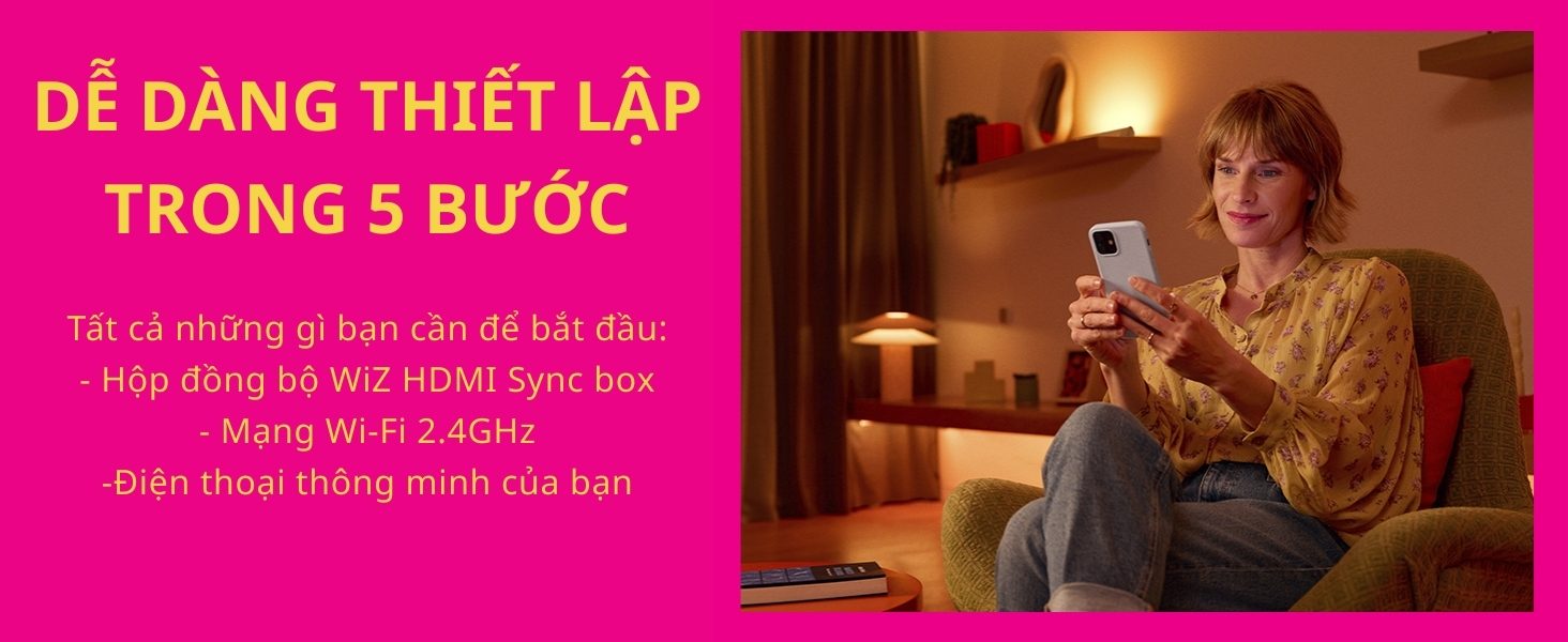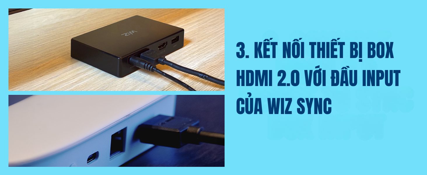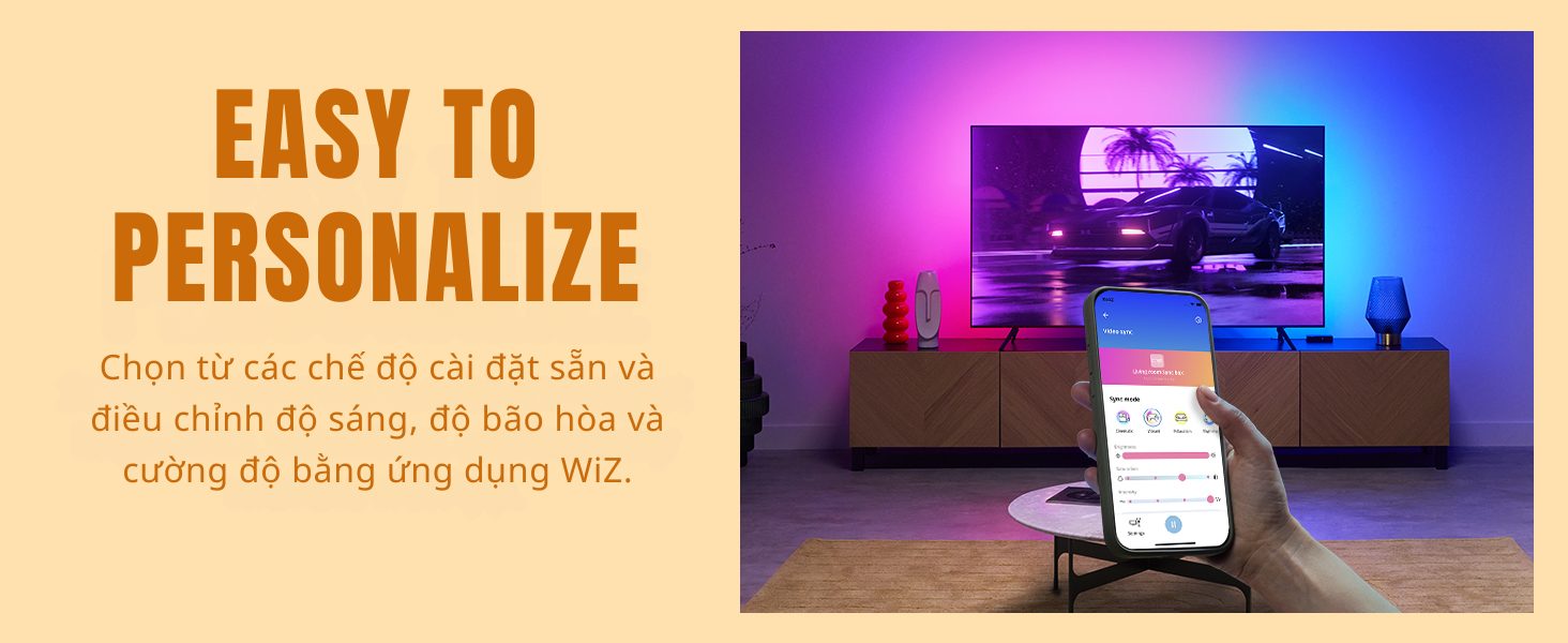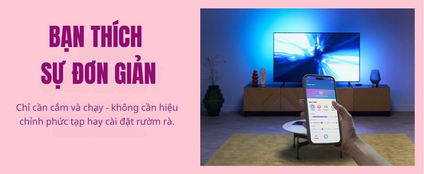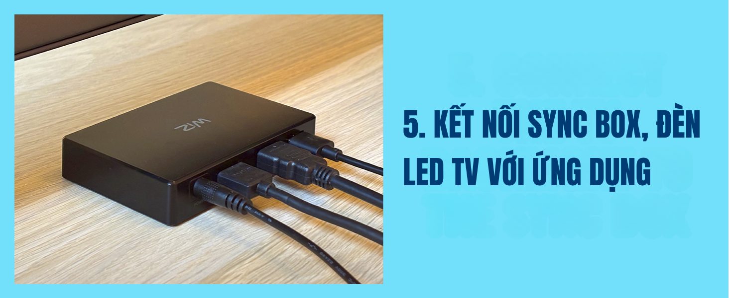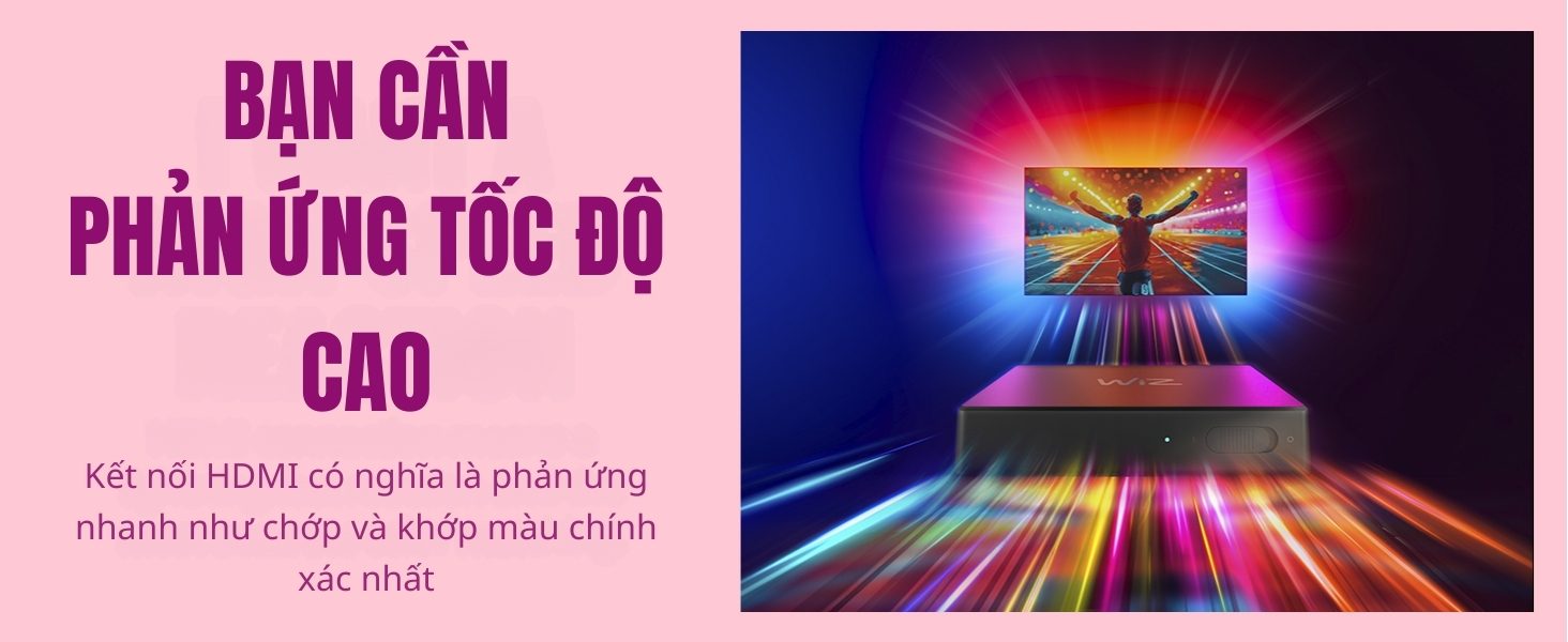 Bên cạnh các tính năng thông minh như: điều khiển bật tắt từ xa, hẹn giờ, chỉnh màu sắc, Philips WiZ Sync Box nổi bật với khả năng giúp đồng bộ ánh sáng từ màn hình TV với LED dây RGBIC thông qua cổng HDMI. Màu sắc được đồng bộ chính xác và gần như không có độ trễ.