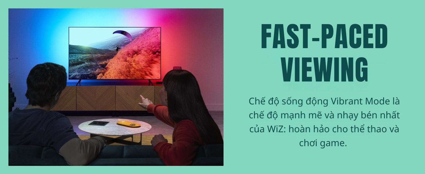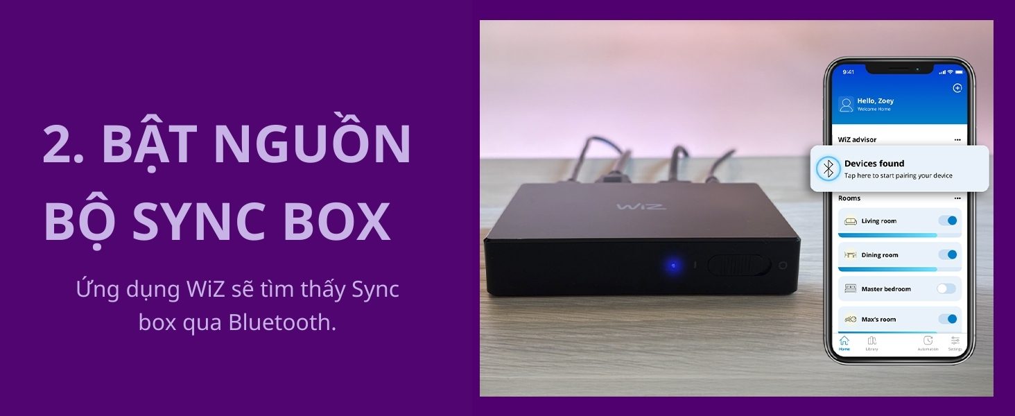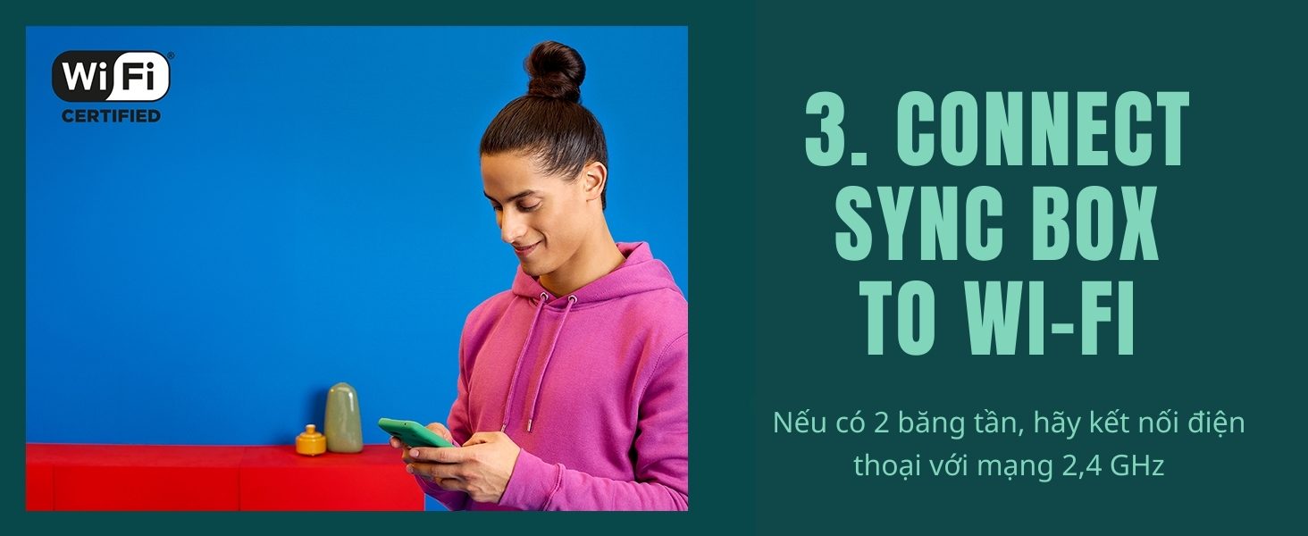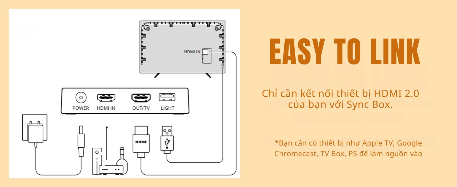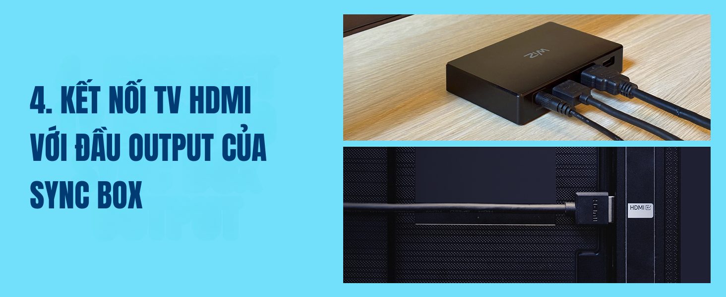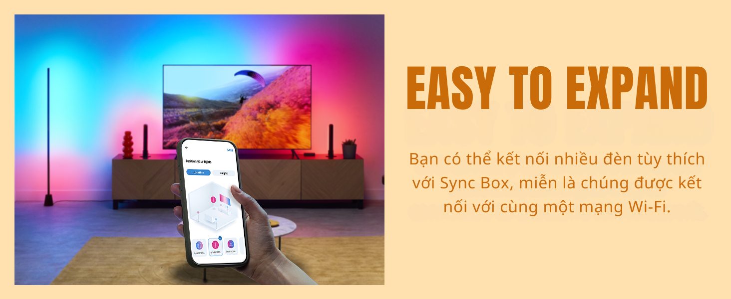 Bên cạnh các tính năng thông minh như: điều khiển bật tắt từ xa, hẹn giờ, chỉnh màu sắc, Philips WiZ Sync Box nổi bật với khả năng giúp đồng bộ ánh sáng từ màn hình TV với LED dây RGBIC thông qua cổng HDMI. Màu sắc được đồng bộ chính xác và gần như không có độ trễ.